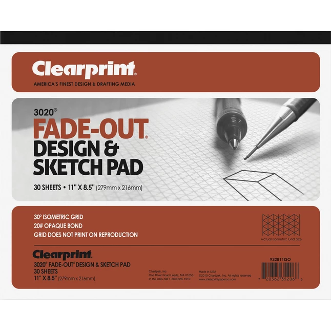 Non-reproducible blue 30 degree ISO grid with border to assist in scaling drawings in three main directions. Pad is perfect for plumbing, heating and air conditioning and mechanical design layouts. Pad measures 8-1/2 x 11 inches and contains 30 sheets.